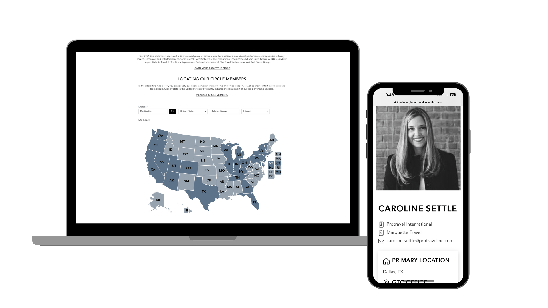 Our Circle Partner Portal, available to Principal ICs and their teams, enables our Preferred Partners to identify your home and office location, contact information, travel specialization, and team details via an interactive heatmap of the US and Europe. These profiles ensure recognition among GTC’s and Internova’s Preferred Partners for those who opt-in.